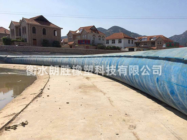 充氣式橡膠壩:以空氣為充填介質(zhì)的柔性擋水活動壩。分書脊式充氣壩,擾流式充氣壩。與充水橡膠壩的區(qū)別: